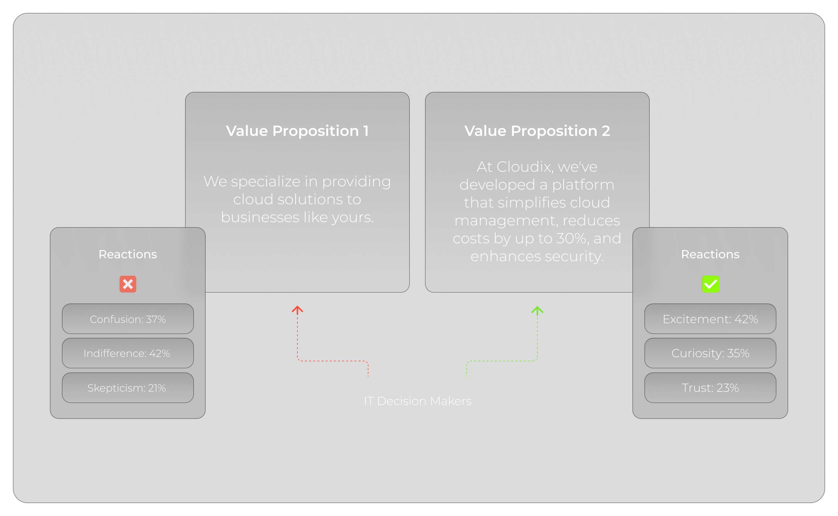 Don't waste time on blind message iterations. Test different Value Propositions and Calls to Action to see how your audience really reacts. Once you find the perfect fit, scale it for maximum impact!